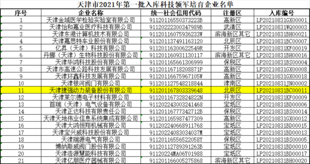 2021年8月23日,天津市科學技術(shù)局公示了天津市科技領軍培育企業(yè)名單,天津捷強動力裝備股份有限公司實力登榜。繼2020年11月獲工業(yè)和信息化部頒發(fā)的國家級專精特新“小巨人”企業(yè)認定后,這是捷強裝備在不到一年時間里獲得的又一項重量級資質(zhì)認證。